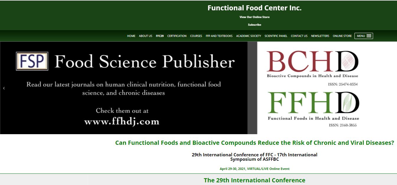 - Functional Food Conference, San Diego; FunctionaL foods and senescence; 2020/8 >>>