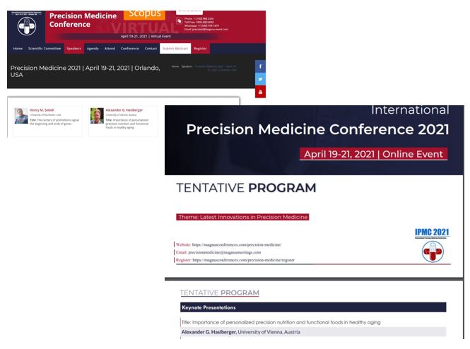- Bodenseekongress: Umwelt, Ernährung und Epigenetik in einer personalisierten Gesundheitsvorsorge: Kongress link >>> , Video Vortrag >>>